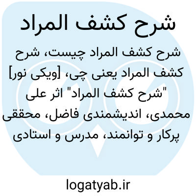 [ویکی نور] "شرح کشف المراد" اثر علی محمدی، اندیشمندی فاضل، محققی پرکار و توانمند، مدرس و استادی سخت کوش از حوزه علمیه مقدس قم که شرحی بر شرح کتاب تجریدالاعتقاد و با موضوع عقیده و کلام به زبان فارسی میباشد.