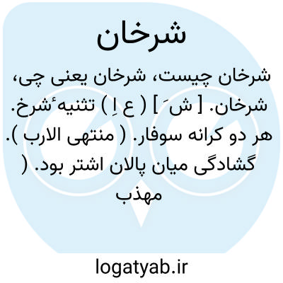 شرخان. [ ش َ ] ( ع اِ ) تثنیه ٔشرخ. هر دو کرانه سوفار. ( منتهی الارب ). گشادگی میان پالان اشتر بود. ( مهذب الاسماء ). رجوع به شرخ شود.