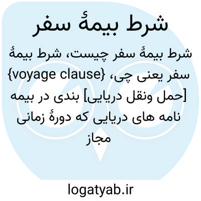 {voyage clause} [حمل ونقل دریایی] بندی در بیمه نامه های دریایی که دورۀ زمانی مجاز برای یک سفر یا یک مجموعه سفر را مشخص می کند