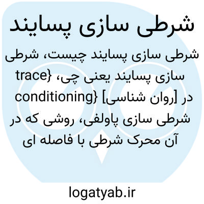 {trace conditioning} [روان شناسی] در شرطی سازی پاولفی، روشی که در آن محرک شرطی با فاصله ای ثابت از محرک غیرشرطی جدا می شود و نخست محرک شرطی عرضه می شود