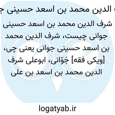 [ویکی فقه] جَوّانی، ابوعلی شرف الدین محمد بن اسعد بن علی حسینی، نقیب، نسب شناس، شاعر، جغرافیانگار و مورخ سده ششم است.