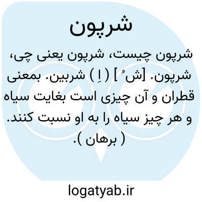 شرپون. [ش ُ ] ( اِ ) شربین. بمعنی قطران و آن چیزی است بغایت سیاه و هر چیز سیاه را به او نسبت کنند. ( برهان ). قطران. منداب. چیزی چون نفت سیاه که به شتر مالند. قطران. || هرچیز بسیارسیاه. ( ناظم الاطباء ).