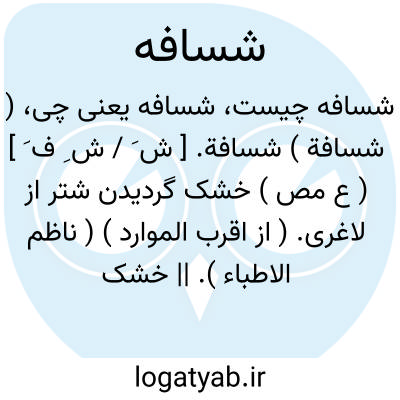 لغت نامه دهخدا ( شسافة ) شسافة. [ ش َ / ش ِ ف َ ] ( ع مص ) خشک گردیدن شتر از لاغری. ( از اقرب الموارد ) ( ناظم الاطباء ). || خشک گردیدن. ( منتهی الارب ). || خشک شدن پوست کسی بر استخوانش. ( از اقرب الموارد ) ( ناظم الاطباء ). || خشک کردن خیک را ( متعدی ). || خشک شدن خیک. ( ناظم الاطباء ). || خشک گردانیدن ( متعدی ). ( منتهی الارب ).