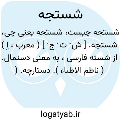 شستجه. [ ش ُ ت َ ج َ ] ( معرب، اِ ) از شسته فارسی، به معنی دستمال. ( ناظم الاطباء ). دستارچه. ( مهذب الاسماء ) ( دهار ). رجوع به شستکه شود.