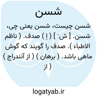 شسن. [ ش َ ] ( اِ ) صدف. ( ناظم الاطباء ). صدف را گویند که گوش ماهی باشد. ( برهان ) ( از آنندراج ) ( از انجمن آرا ). || نامیه و هر چیز قابل نمو و افزایش. ( ناظم الاطباء ) ( از برهان ) ( از آنندراج ) ( از انجمن آرا ). || نیشکر. || خار ترنجبین. ( ناظم الاطباء ) ( برهان ). || رحم و زهدان. ( ناظم الاطباء ). رحم را نیز گفته اند که بچه دان باشد و به جای حرف ثانی شین هم بنظر آمده است. ( از برهان ).
