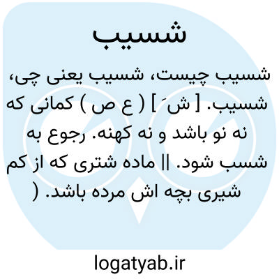 شسیب. [ ش َ ] ( ع ص ) کمانی که نه نو باشد و نه کهنه. رجوع به شسب شود. || ماده شتری که از کم شیری بچه اش مرده باشد. ( از اقرب الموارد ) ( ناظم الاطباء ) ( منتهی الارب ) ( آنندراج ).