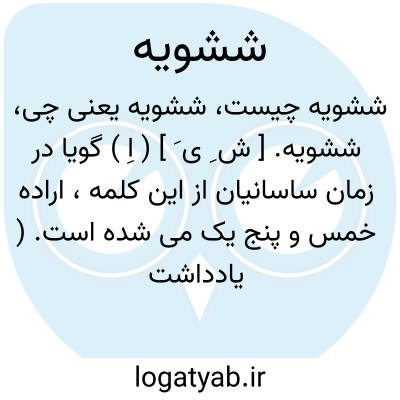ششویه. [ ش ِ ی َ ] ( اِ ) گویا در زمان ساسانیان از این کلمه، اراده خمس و پنج یک می شده است. ( یادداشت مؤلف ): فقال له [ لابی صالح السجستانی ] کیف تصنع بدهویه و ششویه ؟ قال اکتب عشراً و نصف عشر. قال فکیف تصنع بوید ( ؟ ) قال اکتب و ایضاً. قال والوید النیف و الزیادة تزاد. فقال له قطع اﷲ اصلک من الدنیا کما قطعت اصل الفارسیة. ( ابن الندیم ص 338 ).