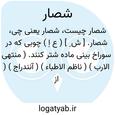 شصار. [ ش ِ ] ( ع اِ ) چوبی که در سوراخ بینی ماده شتر کنند. ( منتهی الارب ) ( ناظم الاطباء ) ( آنندراج ) ( از اقرب الموارد ). || چوبی که بدان شرم ماده شتر را تنگ کنند. || آزردگی شرم ماده شتر. ( منتهی الارب ) ( آنندراج ) ( ناظم الاطباء ).