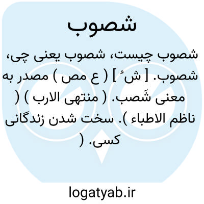 شصوب. [ ش ُ ] ( ع مص ) مصدر به معنی شَصب. ( منتهی الارب ) ( ناظم الاطباء ). سخت شدن زندگانی کسی. ( آنندراج ). رجوع به شصب شود. || بسیار شدن گشنی ماده شتر و باردار نگردیدن آن. || دشوار گردیدن کار. ( آنندراج ). سخت شدن کار. ( تاج المصادر بیهقی ) ( المصادر زوزنی ). رجوع به شصب شود.
