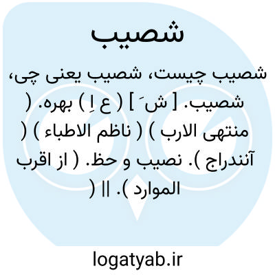 شصیب. [ ش َ ] ( ع اِ ) بهره. ( منتهی الارب ) ( ناظم الاطباء ) ( آنندراج ). نصیب و حظ. ( از اقرب الموارد ). || ( ص ) مرد غریب. ( منتهی الارب ) ( آنندراج ) ( ناظم الاطباء ). غریب. ( از اقرب الموارد ).