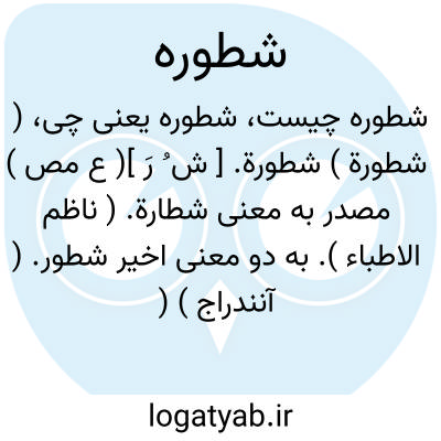 ( شطورة ) شطورة. [ ش ُ رَ ]( ع مص ) مصدر به معنی شطارة. ( ناظم الاطباء ). به دو معنی اخیر شطور. ( آنندراج ) ( از اقرب الموارد ). رجوع به شطارة شود. || برغم مردمان دور گردیدن از ایشان. ( منتهی الارب ). رجوع به شطور و شطارة شود.
