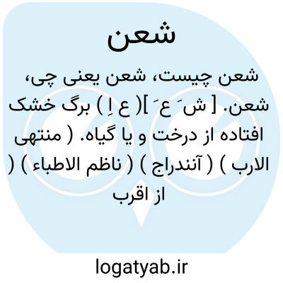 شعن. [ ش َ ع َ ]( ع اِ ) برگ خشک افتاده از درخت و یا گیاه. ( منتهی الارب ) ( آنندراج ) ( ناظم الاطباء ) ( از اقرب الموارد ).