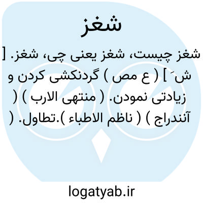 شغز. [ ش َ ] ( ع مص ) گردنکشی کردن و زیادتی نمودن. ( منتهی الارب ) ( آنندراج ) ( ناظم الاطباء ).تطاول. ( اقرب الموارد ). || برآغالانیدن میان قومی. ( منتهی الارب ) ( آنندراج ) ( از ناظم الاطباء ). شورانیدن و تحریک کردن قوم را. ( از اقرب الموارد ).