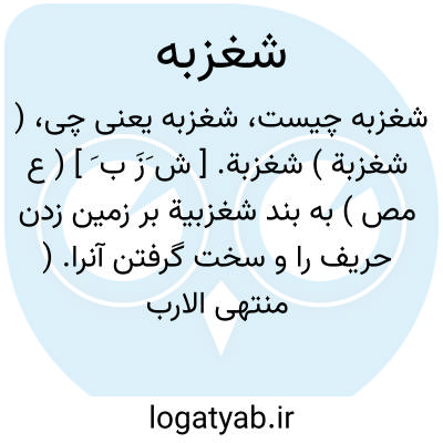 ( شغزبة ) شغزبة. [ ش َزَ ب َ ] ( ع مص ) به بند شغزبیة بر زمین زدن حریف را و سخت گرفتن آنرا. ( منتهی الارب ) ( ناظم الاطباء ) ( آنندراج ) ( از اقرب الموارد ) ( از نشوءاللغة ص 19 ). || پای درپیچیدن در کشتی. ( منتهی الارب ) ( ناظم الاطباء ) ( آنندراج ). || به زور گرفتن کسی را. ( از اقرب الموارد ). و رجوع به شغربة و شغربیة شود.