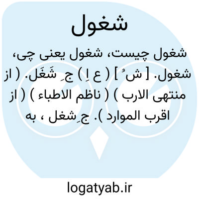 شغول. [ ش ُ ] ( ع اِ ) ج ِ شَغَل. ( از منتهی الارب ) ( ناظم الاطباء ) ( از اقرب الموارد ). ج ِشغل، به معنی کار. ( آنندراج ). و رجوع به شغل شود.