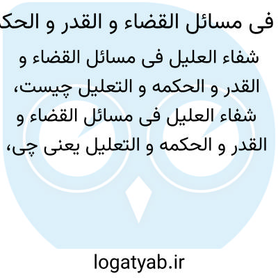 [ویکی نور] کتاب شفاء العلیل فی مسائل القضاء و القدر و الحکمة و التعلیل در موضوع جبر و قدر به زبان