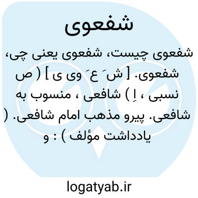 شفعوی. [ ش َ ع َ وی ی ] ( ص نسبی، اِ ) شافعی، منسوب به شافعی. پیرو مذهب امام شافعی. ( یادداشت مؤلف ): و شافعی لم اَر من تعرض لجواز شفعوی قیاساً علی موسوی و ان کان بعض الفقهاء استعمله و هو حسن الملبس. ( سیوطی ). وجه دوم آن است که گفت: «الذین آمنوا» وعده مؤمنان را میدهد... و شفعوی خود را سنی گوید و شیعه خود را مؤمن خواند. ( کتاب النقض ص 288 ). قلعه ای ساخته بودند و راهها بر مسلمانان حنفی و شفعوی و شاعی بگرفته. ( کتاب النقض ). همه فضلاء و عقلاءاز پادشاه و رعیت و... و شفعوی و شاعی بدانند که سخن اولش به آخرش نمی ماند. ( کتاب النقض ص 386 ). انصاف این است که هر مسلمان حنفی و شفعوی به انصاف و استقصاءدر این مجموعه که این خواجه انتقالی کرده است نظر کند... ( کتاب النقض ص 443 )... همه شفعویان و حنفیان و شیعه این سنت را متابعت کرده اند. ( کتاب النقض ص 406 ).