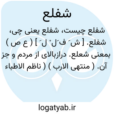 شفلع. [ ش َ ف َل ْ ل َ ] ( ع ص ) بمعنی شعلع. درازبالای از مردم و جز آن. ( منتهی الارب ) ( ناظم الاطباء ). و رجوع به شعلع و شعنلع شود.