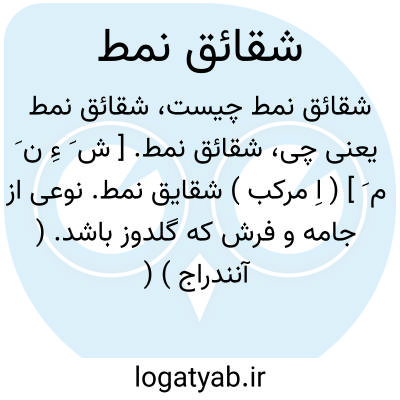 شقائق نمط. [ ش َ ءِ ن َ م َ ] ( اِ مرکب ) شقایق نمط. نوعی از جامه و فرش که گلدوز باشد. ( آنندراج ) ( غیاث ).
