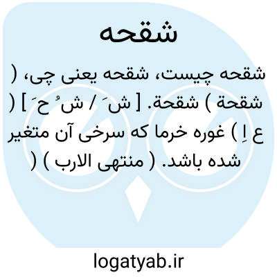 شقحة. [ ش ُ ح َ ] ( ع اِ ) پستان ماده سگ. || سرخی سپیدی آمیخته. ( منتهی الارب ) ( ناظم الاطباء ) ( آنندراج ) ( از اقرب الموارد ).