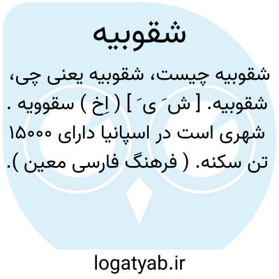 لغت نامه دهخدا شقوبیه. [ ش َ ی َ ] ( اِخ ) سقوویه. شهری است در اسپانیا دارای 15000 تن سکنه. ( فرهنگ فارسی معین ).