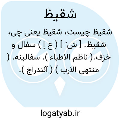 لغت نامه دهخدا شقیظ. [ ش َ ] ( ع اِ ) سفال و خزف.( ناظم الاطباء ). سفالینه. ( منتهی الارب ) ( آنندراج ).