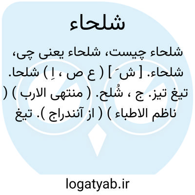 شلحاء. [ ش َ ] ( ع ص، اِ ) شلحا. تیغ تیز. ج، شُلح. ( منتهی الارب ) ( ناظم الاطباء ) ( از آنندراج ). تیغ تیز و آن به سبب اسم آلت بودنش مؤنث آمده است. ( از اقرب الموارد ). رجوع به شلحی شود.