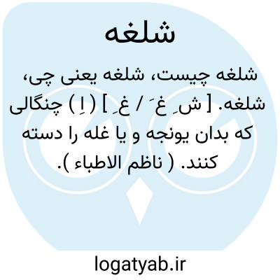 لغت نامه دهخدا شلغه. [ ش ِ غ َ / غ ِ ] ( اِ ) چنگالی که بدان یونجه و یا غله را دسته کنند. ( ناظم الاطباء ).