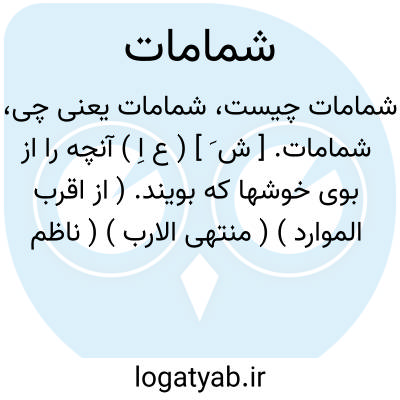 شمامات. [ ش َ ] ( ع اِ ) آنچه را از بوی خوشها که بویند. ( از اقرب الموارد ) ( منتهی الارب ) ( ناظم الاطباء ) ( آنندراج ): اوانی زر و سیم مشحون به شمامات کافور. ( ترجمه تاریخ یمینی ص 237 ).