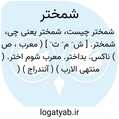 شمختر. [ ش َ م َ ت َ ] ( معرب، ص ) ناکس. بداختر. معرب شوم اختر. ( منتهی الارب ) ( آنندراج ) ( ناظم الاطباء ) ( از اقرب الموارد ). منحوس. معرب شوم اختر یعنی منحوس طالع. ( از الالفاظ الفارسیة المعربة ادی شیر ). || لئیم. ( از اقرب الموارد ) ( الالفاظ الفارسیة المعربة ).