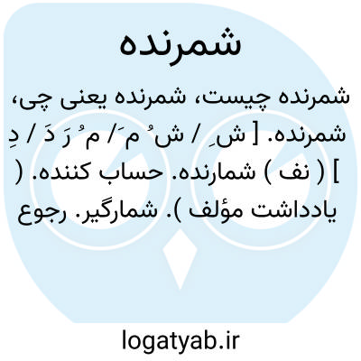 لغت نامه دهخدا شمرنده. [ ش ِ / ش ُ م َ/ م ُ رَ دَ / دِ ] ( نف ) شمارنده. حساب کننده. ( یادداشت مؤلف ). شمارگیر. رجوع به شمارنده و شمردن شود.