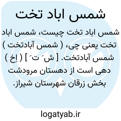 ( شمس آبادتخت ) شمس آبادتخت. [ ش َ ت َ ] ( اِخ ) دهی است از دهستان مرودشت بخش زرقان شهرستان شیراز. سکنه آن 585 تن. آب آن از رودخانه سیوند. صنایع دستی زنان قالیبافی است. ( از فرهنگ جغرافیایی ایران ج 7 ).