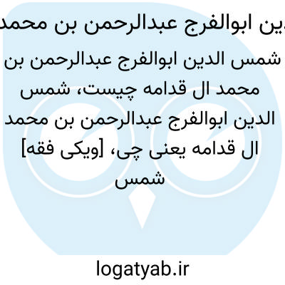 [ویکی فقه] شمس الدین ابوالفرج عبدالرحمن بن محمد آل قدامه (ابهام زدایی). شمس الدین ابوالفرج عبدالرحمن بن محمد آل قدامه ممکن است اشاره به اشخاص و شخصیت های ذیل باشد: • شمس الدین ابوالفرج عبدالرحمن بن محمد بن ابراهیم آل قدامه، شمس الدّین (خطیب) ابوالفرج عبدالرحمن بن محمد بن ابراهیم، از شخصیت های آلِ قُدامه• شمس الدین ابوالفرج عبدالرحمن بن محمد بن احمد آل قدامه، شمس الدین ابوالفرج عبدالرحمن بن محمد، از شخصیت های آلِ قُدامه