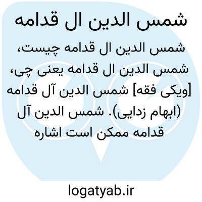 [ویکی فقه] شمس الدین آل قدامه (ابهام زدایی). شمس الدین آل قدامه ممکن است اشاره به اشخاص و شخصیت های ذیل باشد: • شمس الدین ابوالفرج عبدالرحمن بن علی آل قدامه، شمس الدین ابوالفرج عبدالرحمن بن علی، از شخصیت های آلِ قُدامه• شمس الدین ابوالفرج عبدالرحمن بن محمد بن ابراهیم آل قدامه، شمس الدّین (خطیب) ابوالفرج عبدالرحمن بن محمد بن ابراهیم، از شخصیت های آلِ قُدامه• شمس الدین ابوالفرج عبدالرحمن بن محمد بن احمد آل قدامه، شمس الدین ابوالفرج عبدالرحمن بن محمد، از شخصیت های آلِ قُدامه• شمس الدین ابوعبدالله محمد بن حمزه آل قدامه، شمس الدین ابوعبدالله محمد بن حمزه، از شخصیت های آلِ قُدامه• شمس الدین ابوعبدالله محمد بن عبدالرحمن آل قدامه، شمس الدّین ابوعبدالله محمد بن عبدالرحمن معروف به ابن رشید، از شخصیت های آلِ قُدامه