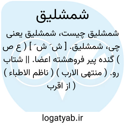 شمشلیق. [ ش َ ش َ ] ( ع ص ) گنده پیر فروهشته اعضا. || شتاب رو. ( منتهی الارب ) ( ناظم الاطباء ) ( از اقرب الموارد ) ( آنندراج ).
