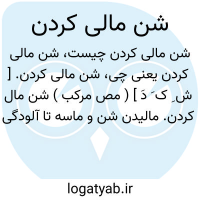 شن مالی کردن. [ ش ِ ک َ دَ ] ( مص مرکب ) شن مال کردن. مالیدن شن و ماسه تا آلودگی ظرف و شوخ آن زدوده شود.
