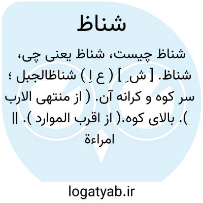 شناظ. [ ش ِ ] ( ع اِ ) شناظالجبل؛ سر کوه و کرانه آن. ( از منتهی الارب ). بالای کوه.( از اقرب الموارد ). || امراءة ذات شناظ؛ زن پرگوشت و فربه. ( منتهی الارب ) ( از اقرب الموارد ).