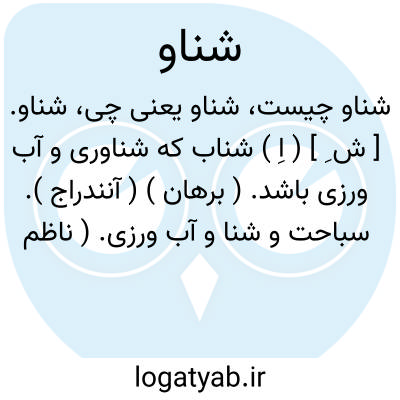 پیغامبر ( ع ) فرموده است: علموا صبیانکم الرمایة و السباحة؛ گفت: بیاموزید فرزندان را تیراندازی و شناو. ( نوروزنامه ). و جمله را ادب سلاح و مردی از تیر انداختن و نیزه داشتن و... و شمشیر و قاروره افکندن و شناو و آنچه مردان را بکار آید. ( مجمل التواریخ ). پسر دیوانه به بهانه ماهی، خویشتن چون مار در آب افگندی و چون غوک شناو کردی. ( سندبادنامه ص 115 ). تا به میان آب برفت و گرد بر گرد آن برمی آمد و شناو میکرد. ( تاریخ قم ص 80 ). || ( ص ) شناکننده. ( برهان ) ( آنندراج ). شناکننده. آب ورز. ( ناظم الاطباء ). || کم عمق. ( ناظم الاطباء ). رجوع به شنا شود.