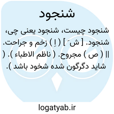 شنجود. [ ش َ ] ( اِ ) زخم و جراحت. || ( ص ) مجروح. ( ناظم الاطباء ). ( شاید دگرگون شده شخود باشد ).