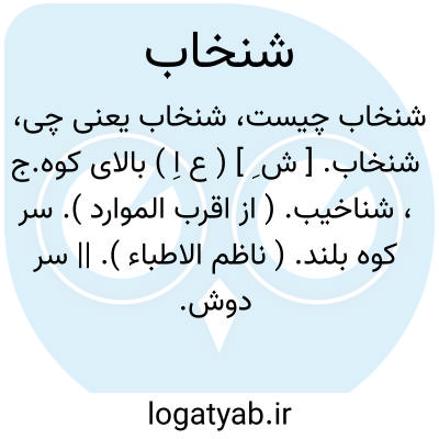 شنخاب. [ ش ِ ] ( ع اِ ) بالای کوه.ج، شناخیب. ( از اقرب الموارد ). سر کوه بلند. ( ناظم الاطباء ). || سر دوش. || مهره پشت. ( ناظم الاطباء ). ج، شناخیب. رجوع به شنخوب شود.