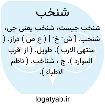 شنخب. [ ش َ خ َ ] ( ع ص ) دراز. ( منتهی الارب ). طویل. ( از اقرب الموارد ). ج، شناخب. ( ناظم الاطباء ).