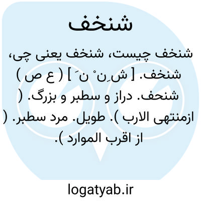 شنخف. [ ش ِن ْ ن َ ] ( ع ص ) شنحف. دراز و سطبر و بزرگ. ( ازمنتهی الارب ). طویل. مرد سطبر. ( از اقرب الموارد ).
