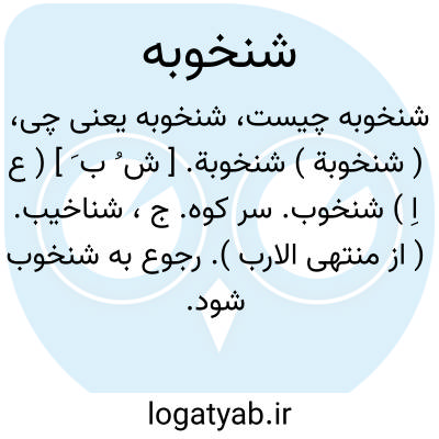 لغت نامه دهخدا ( شنخوبة ) شنخوبة. [ ش ُ ب َ ] ( ع اِ ) شنخوب. سر کوه. ج، شناخیب. ( از منتهی الارب ). رجوع به شنخوب شود.