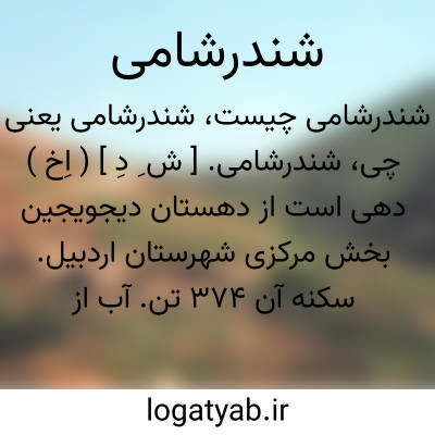 شندرشامی. [ ش ِ دِ ] ( اِخ ) دهی است از دهستان دیجویجین بخش مرکزی شهرستان اردبیل. سکنه آن 374 تن. آب از چشمه و رود. محصول آن غلات و حبوبات. ( از فرهنگ جغرافیایی ایران ج 4 ).
