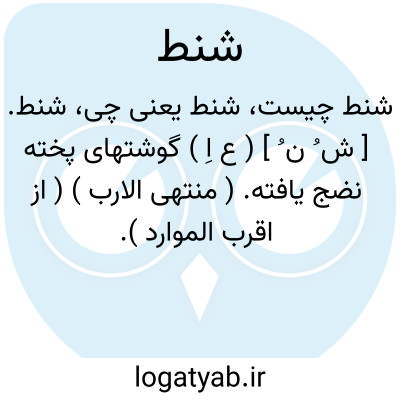 لغت نامه دهخدا شنط. [ ش ُ ن ُ ] ( ع اِ ) گوشتهای پخته نضج یافته. ( منتهی الارب ) ( از اقرب الموارد ).