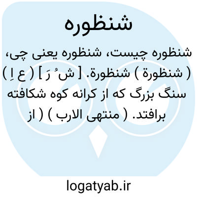 ( شنظورة ) شنظورة. [ ش ُ رَ ] ( ع اِ ) سنگ بزرگ که از کرانه کوه شکافته برافتد. ( منتهی الارب ) ( از اقرب الموارد ).