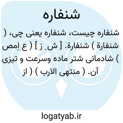 ( شنفارة ) شنفارة. [ ش ِ رَ ] ( ع اِمص ) شادمانی شتر ماده وسرعت و تیزی آن. ( منتهی الارب ) ( از اقرب الموارد ).