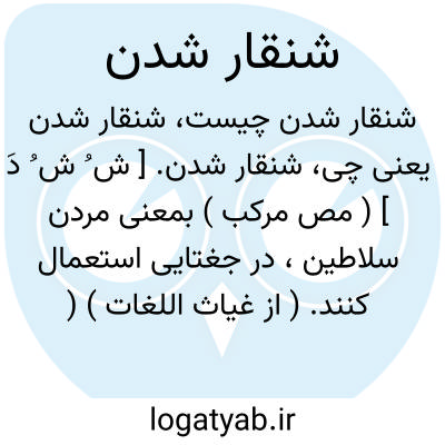 شنقار شدن. [ ش ُ ش ُ دَ ] ( مص مرکب ) بمعنی مردن سلاطین، در جغتایی استعمال کنند. ( از غیاث اللغات ) ( آنندراج ). کنایه از مردن پادشاه ترکستان است و این نیز ترکی است. ( انجمن آرا ). به زبان احترام، مردن.( یادداشت مؤلف ): هنوز این کتاب شرف اتمام نپذیرفته بود که بندگان حضرت عرش آشیانی [ آستان ] شنقار شدند و به دارالخلود انتقال فرمودند به تاریخ روز پنجشنبه بیستم ماه جمادی الاول سنه 1014 هَ. ق. ( جمال الدین حسین اینجو از مقدمه فرهنگ جهانگیری ).