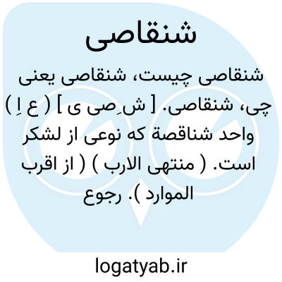 شنقاصی. [ ش ِصی ی ] ( ع اِ ) واحد شناقصة که نوعی از لشکر است. ( منتهی الارب ) ( از اقرب الموارد ). رجوع به شناقصة شود.