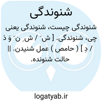 شنوندگی. [ ش َ / ش ِ ن َ وَ دَ / دِ ] ( حامص ) عمل شنیدن. || حالت شنونده.